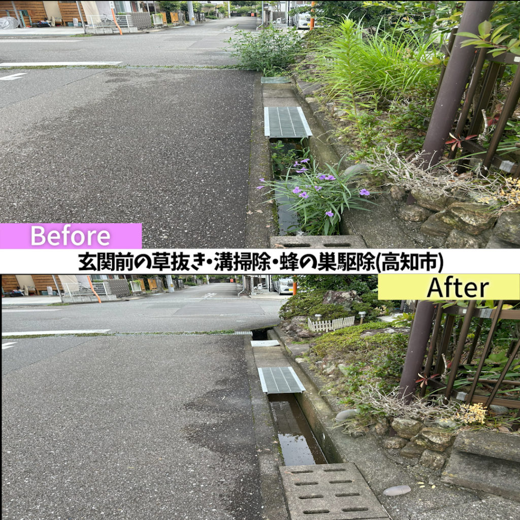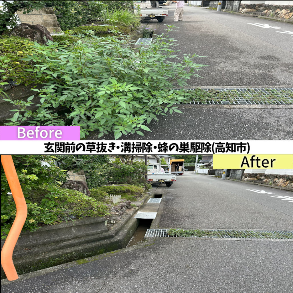 玄関前の草もスッキリさせたいとのことで、草抜き作業も追加で頂きました。