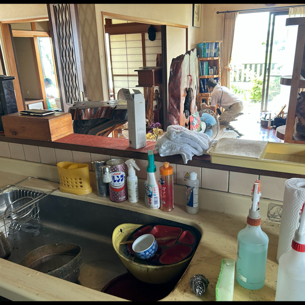 捨てるものと必要な物の分別をして、お部屋の水拭き、掃除機掛けと、キッチン周り、お風呂、トイレの清掃を行いました。